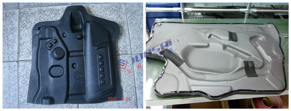 EVA汽車防水膜吸塑機加工后的防水膜具有特定形狀,輪廓清晰分明使車門內部更加整潔有序;與模壓成型工藝相比,吸塑成型機生產速度快,節拍緊湊,能耗更低,換模成本和效率提高了很大一個層次。
